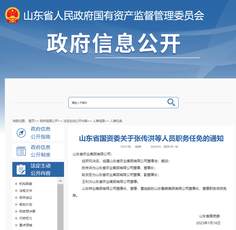 7月1日,农业集团无限公司(以下简称“山东农业集团”)正式注册成立,注册本钱10亿元。国资委官网发布《关于张传洪等人员职务任免的通知》称,经研究决定,组建山东农业集团董事会,彼时鲁粮集团取山东种业集团沉组整合工做也正在逐渐推进。要晓得,此次沉组并非简单的“1+1=2”。这家省属一级国企的降生,标记着山东国企正在农业范畴迈出环节一步,而其背后又了如何的信号?工商消息显示,山东农业集团注册地位于济南市历下区,注册本钱10亿元。运营范畴包罗谷植,粮食收购,粮油仓储办事,食用农产物批发,食用农产物初加工,谷物发卖,国内商业代办署理等。据悉,其将承担全数省级储蓄粮油集中同一办理、政策性粮油分析买卖等政策性使命,打制集现代种业、特色种植养殖及粮油收购、储蓄、加工、畅通于一体的现代农业全财产链出产办事商,正在保障省内农业高质量成长方面阐扬主要感化。从股权布局来看,国资委做为山东农业集团控股股东,持股比例70%;山东国惠投资控股集团无限公司(以下简称“山东国惠”)和财欣资产运营无限公司(以下简称“山东财欣”)别离持股20%、10%。这种股权布局设想既能够确保国有本钱节制力,又能够借帮本钱运营平台引入市场化机制。像山东国惠此前正在农业金融范畴结构颇深,其参取将帮力农业集团建立“财产+金融”的生态闭环。彼时,省国资委官网发布《国资委关于张传洪等人员职务任免的通知》称,经研究决定,组建农业集团无限公司董事会。此中提到委派张传洪为农业集团无限公司董事、董事长,段友臣为农业集团无限公司董事、副董事长,为农业集团无限公司董事。而张传洪和段友臣正在履新前,别离为鲁粮集团董事长、山东种业集团董事长。如许的高管设置装备摆设也凸显了整合后的营业协同标的目的。4月21日,《进修时报》头版头条刊发委林武的签名文章《以立异塑制高质量成长新劣势》。此中,深化国资国企成为11项标记性之一。他指出要“深化沉组整合,开展省属企业同类、同营业沉组,启动实施新一轮专业化整合。对营业附近、财产链上下逛等子公司进行整合,优化生态、削减内卷”。“优化生态、削减内卷”8个字背后,也揭露了山东国企存正在资本设置装备摆设分离、营业范畴交叉、反复投资等问题。客岁4月,国务院印发《新一轮千亿斤粮食产能提拔步履方案(2024 - 2030年)》。积极响应的山东制定了响应的《新一轮千亿斤粮食产能提拔步履实施方案(2024 - 2030年)》。由此也能够看出,其有帮于更好地承障粮食平安的义务,扶植更高程度的“齐鲁粮仓”,确保粮食出产和供应不变。其次,此次沉组并非简单的“物理归并”,更主要的是实现资本的优化设置装备摆设,能阐扬各自劣势,构成更强的成长合力。一方面,山东种业集团是省属一级企业中独一的种业从业集团,具有国度级和省级研发平台,正在种业立异和手艺冲破方面有劣势。另一方面,鲁粮集团做为分析性大型粮食企业集团和粮食储蓄从体企业,控制45亿元资产规模的粮食储蓄系统,并承担全数省级储蓄粮油集中同一办理、政策性粮油分析买卖等政策性使命。两者整合后,将有帮于建立现代种业、储蓄、加工、畅通于一体的现代农业全财产链结构。坐正在全省的角度看,此番沉组不是简单的加法,而是通过计谋协同无效实现粮食产能提拔、种业复兴以及村落财产融合。终究,唯有精准,才能提高设置装备摆设效率;唯有专业化整合,才能实正实现高质量成长。前往搜狐,查看更多。